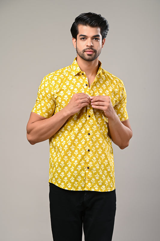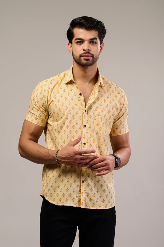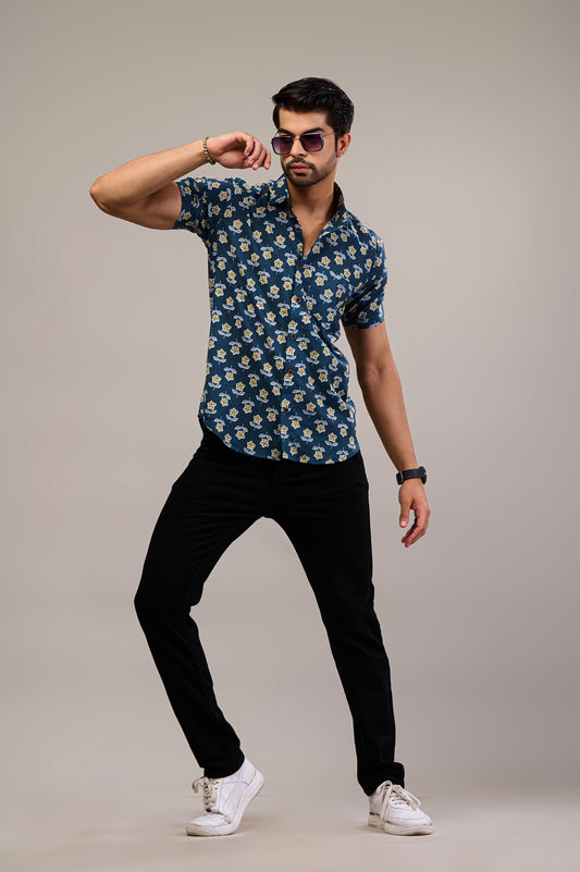 Floral Harmony Men’s Half Sleeve Printed Shirt