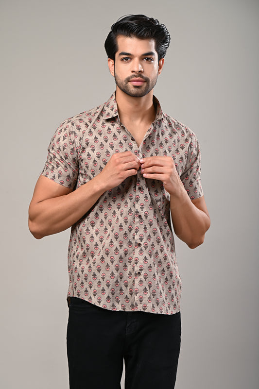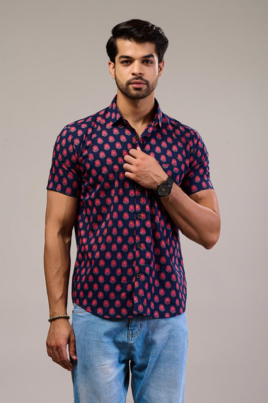 Rosewood Radiance Men’s Half Sleeve Printed Shirt