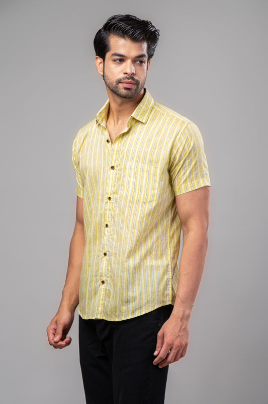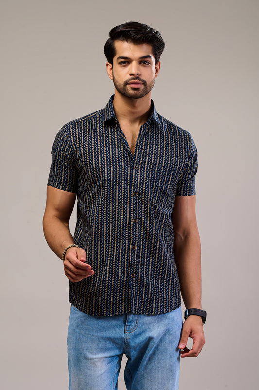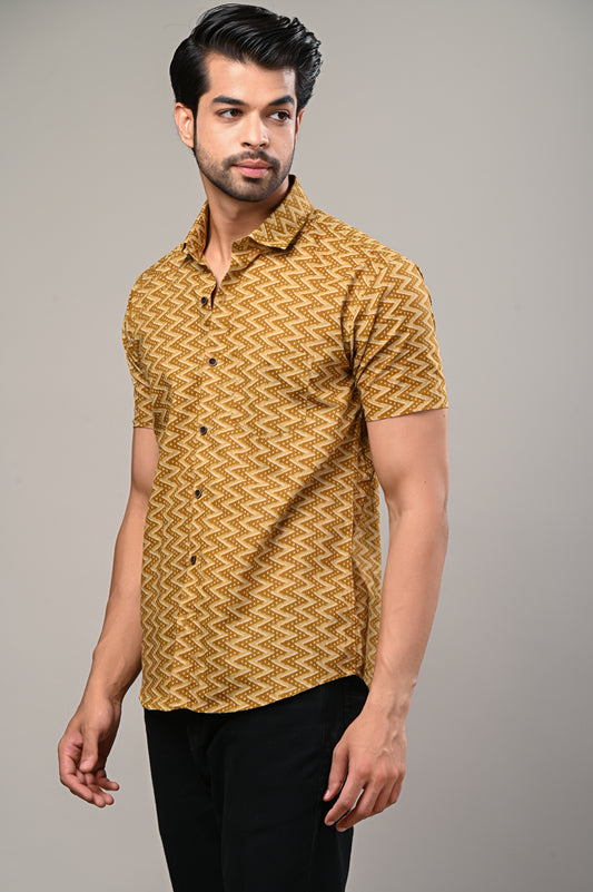Zig Zag Mustard Print Men’s Half Sleeve Shirt