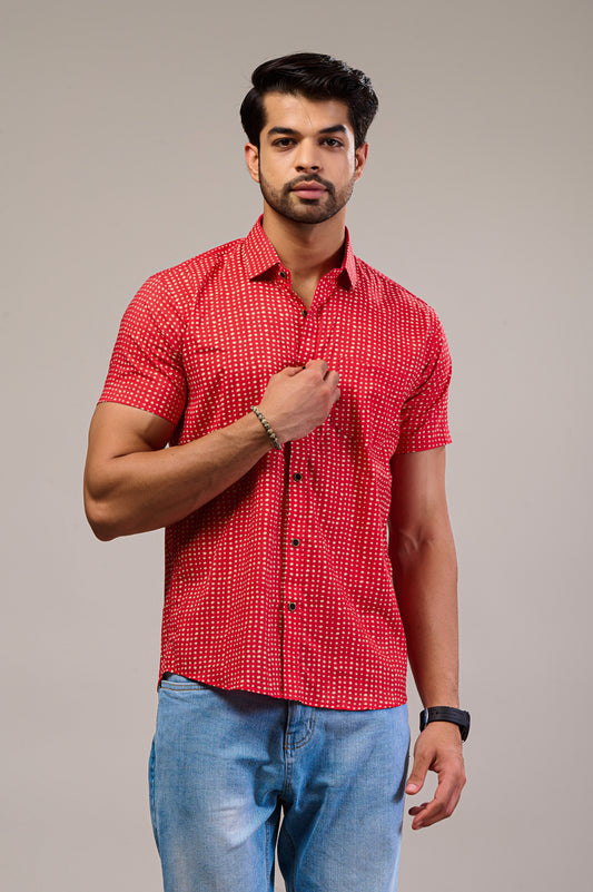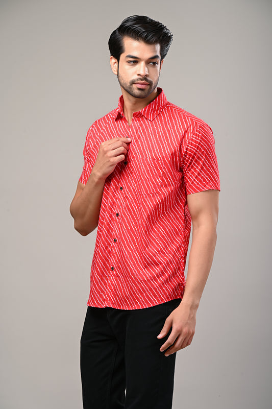 Red Bandhej Print Men’s Half Sleeve Shirt