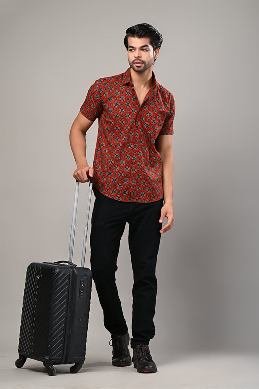 Maroon Ajrak Print Men’s Half Sleeve Shirt