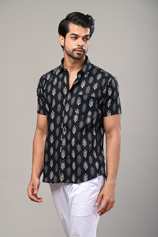 Leafy Layer Print Men’s Half Sleeve Shirt