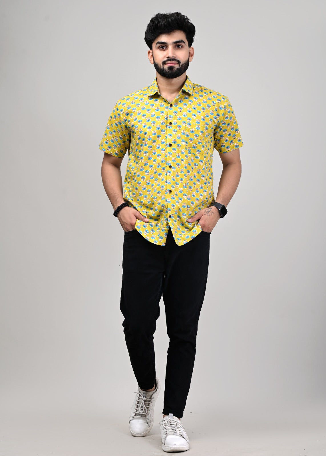Cornflower Sunlit Delight Men’s Half Sleeve Printed Shirt