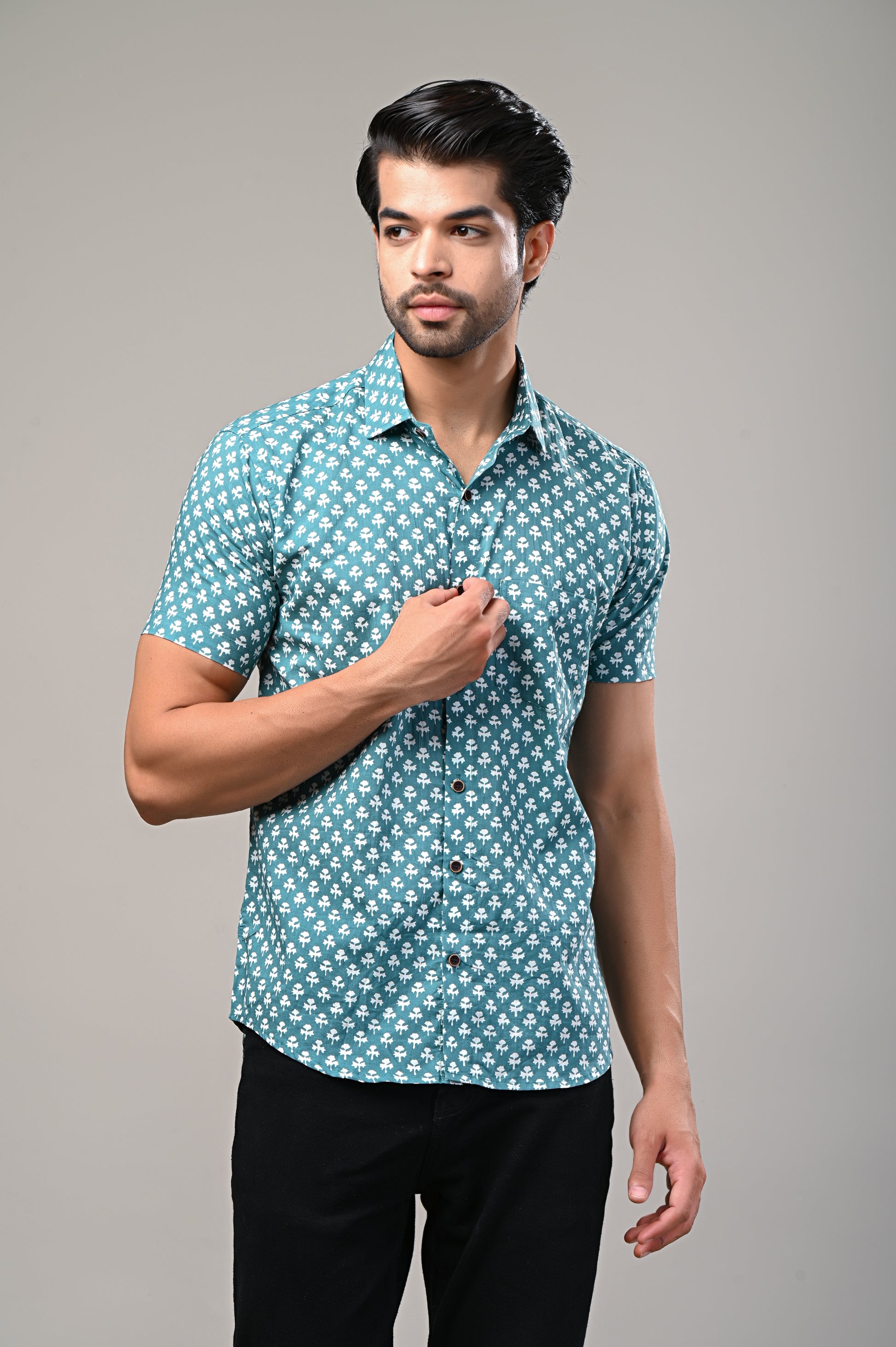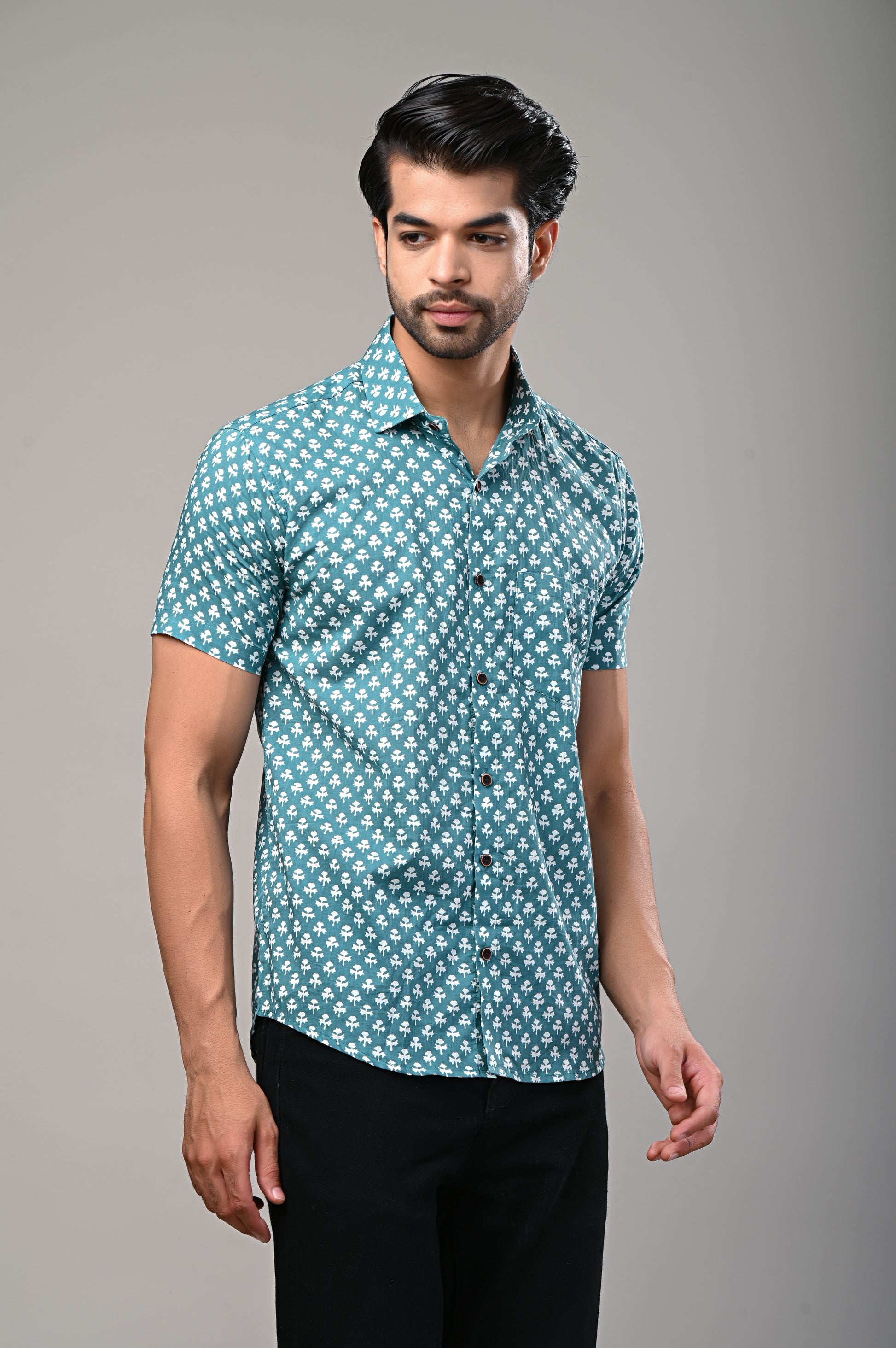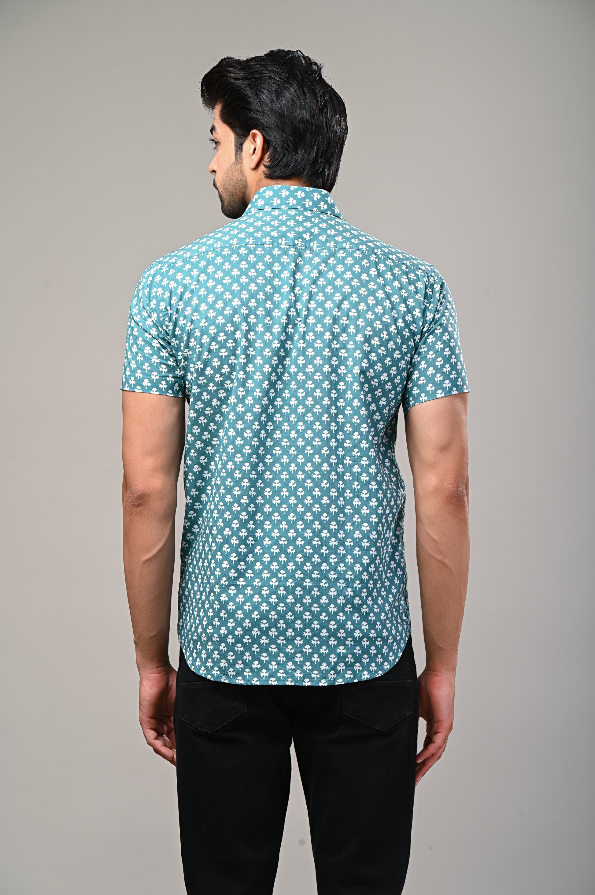 Teal Breeze Printed Men’s Half Sleeve Shirt