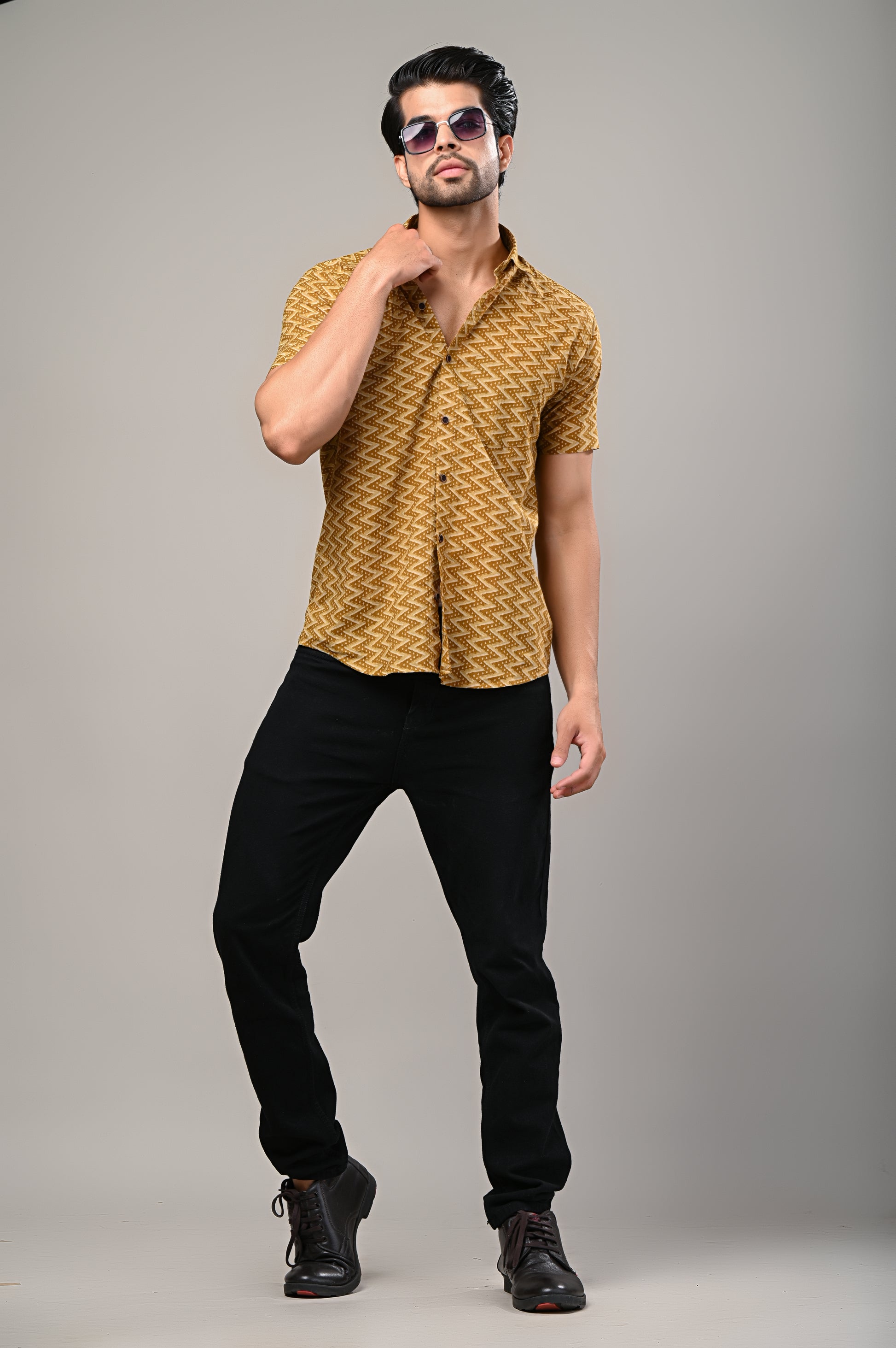 Zig Zag Mustard Print Men’s Half Sleeve Shirt